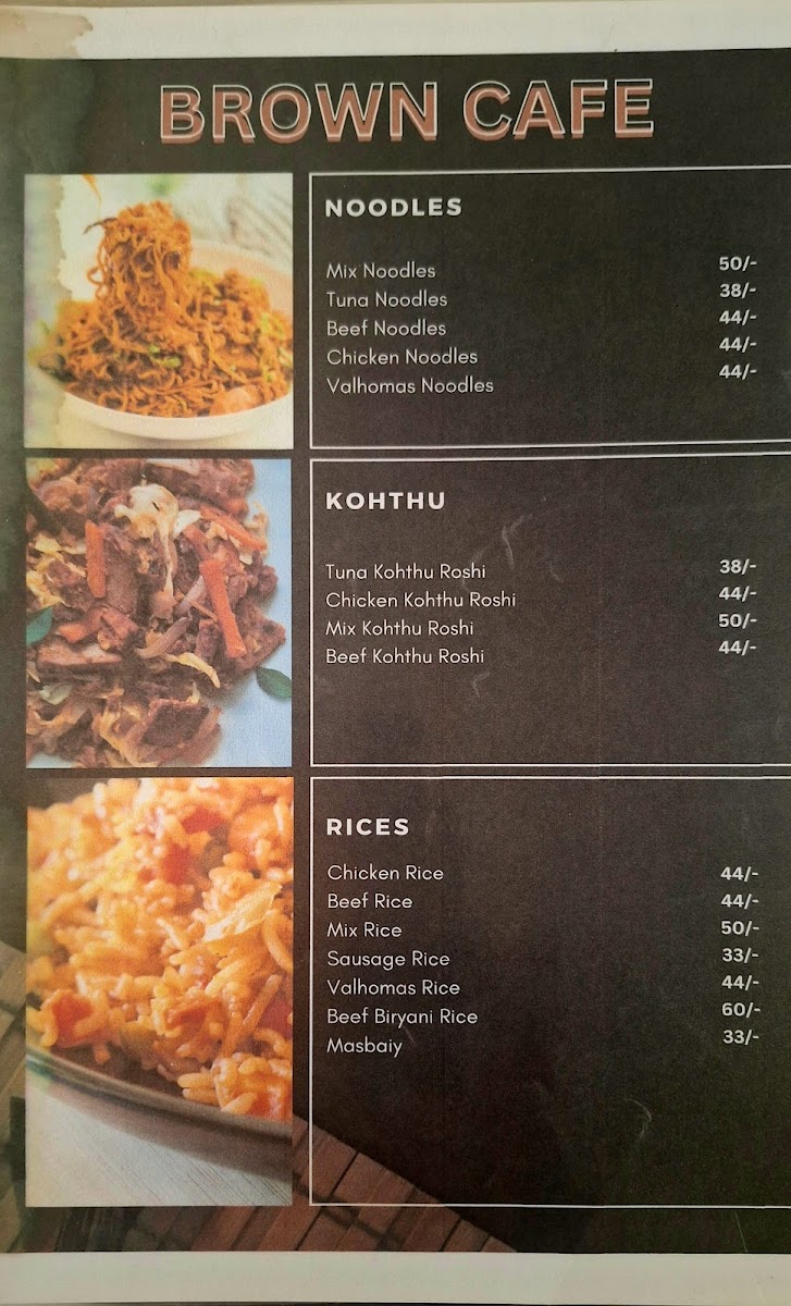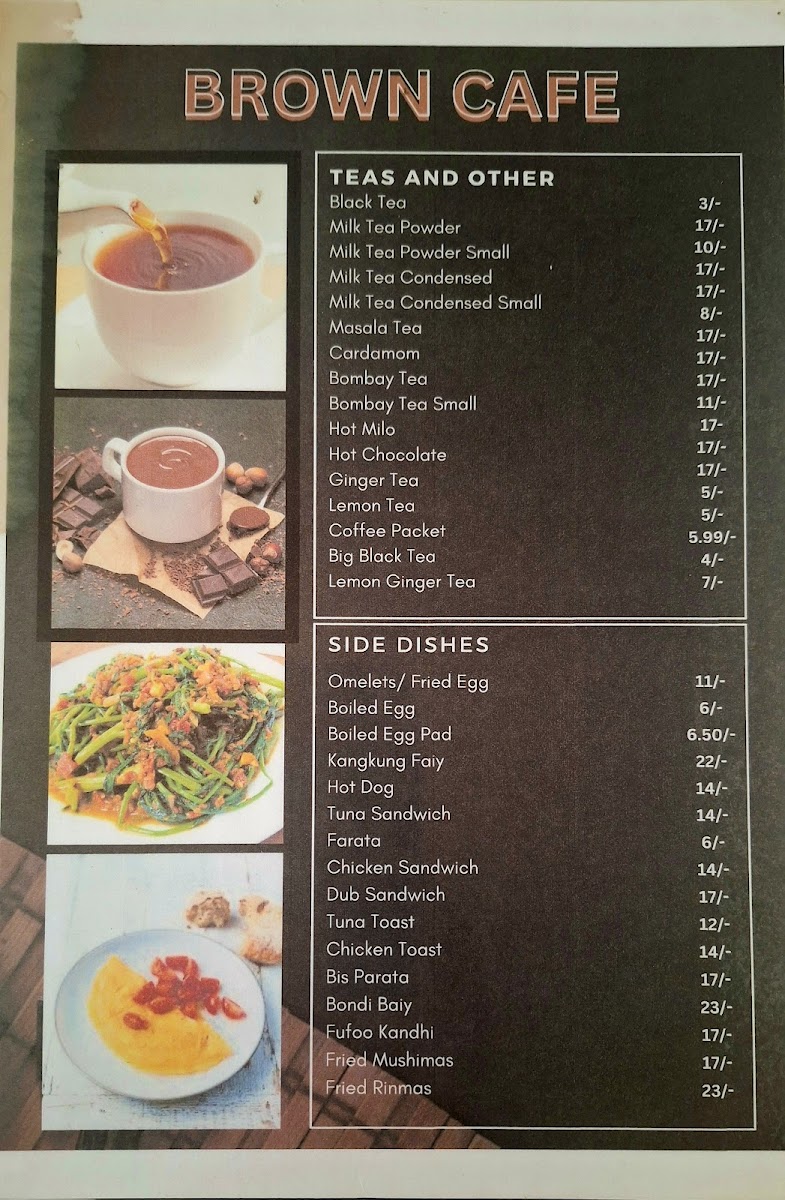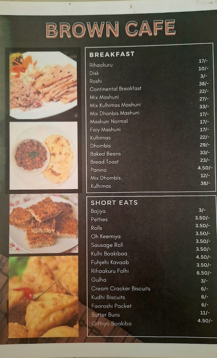 The menu at Brown Cafe' offers a savory exploration of traditional Maldivian flavors. Highlights include various types of hendika, fragrant rice dishes, and local favorites like roshi and hulimas. Each bite promises authenticity and satisfaction, making it an ideal spot for a casual meal or a sweet tea break. Customers rave about the affordability and generous portions, ensuring a satisfying experience without breaking the bank.